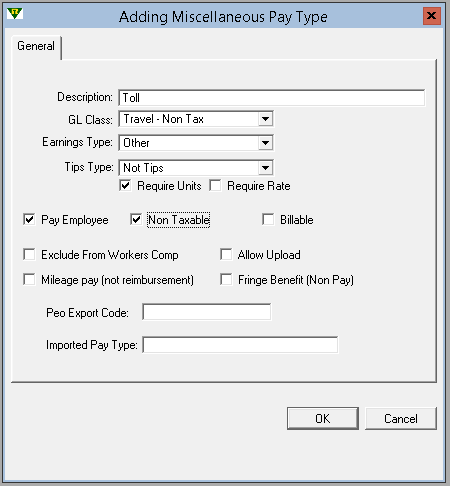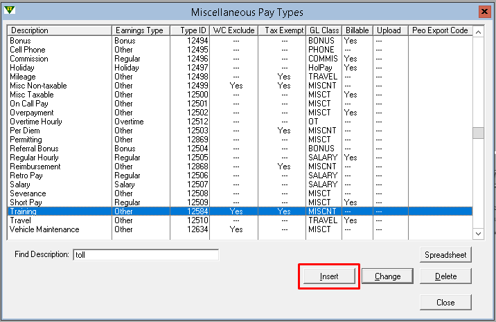 Click the Insert button to add a new Misc Pay Type or Change button to edit an existing Misc Pay Type.